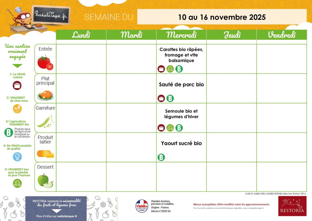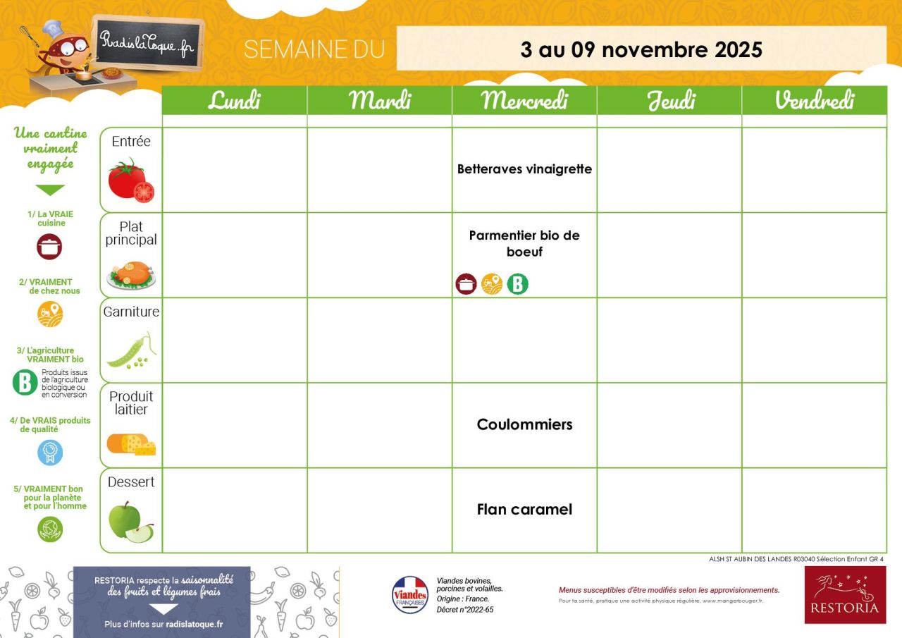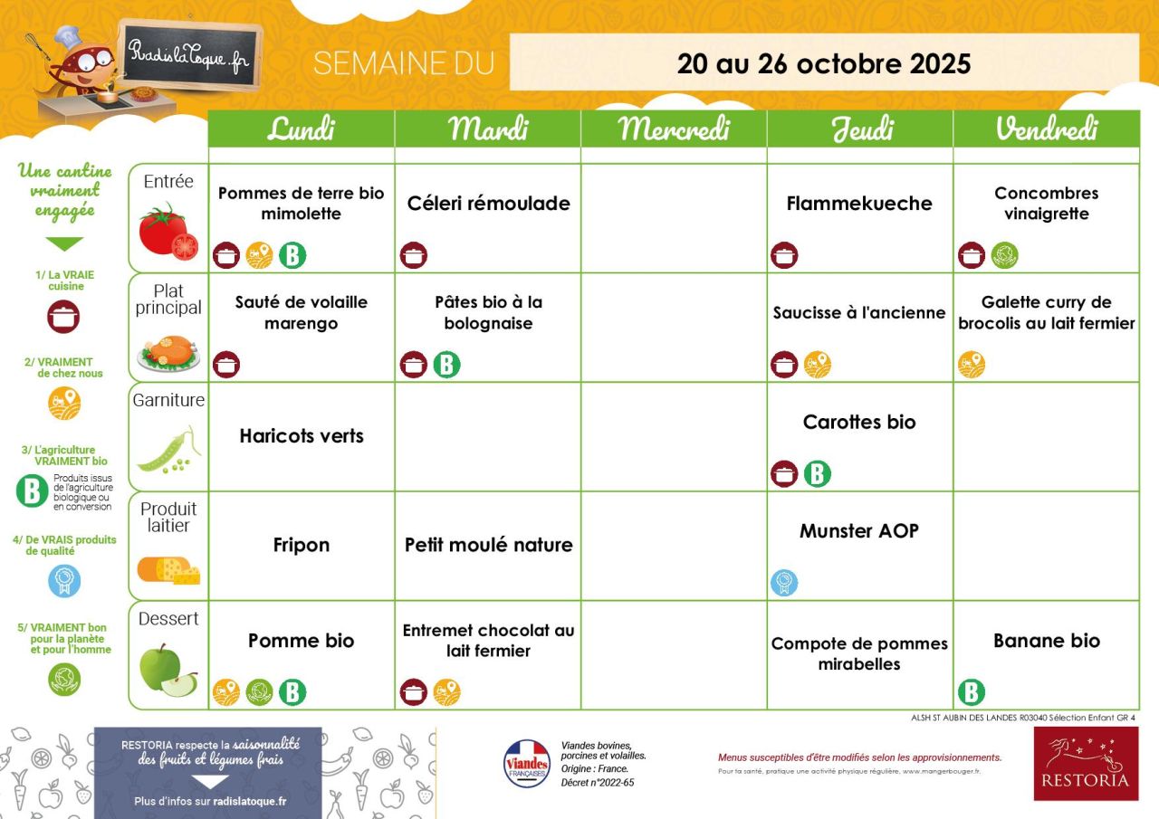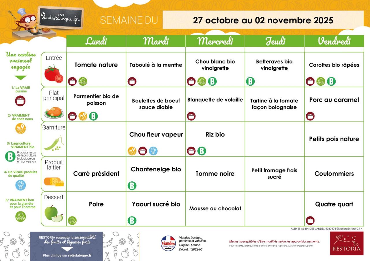 Restoria propose également un site internet pour les familles "Radis la toque", ce site vous permet de consulter les menus sur plusieurs semaines, il propose également des idées de recettes, de menus pour le soir, des jeux pour les enfants ... http://www.radislatoque.fr/