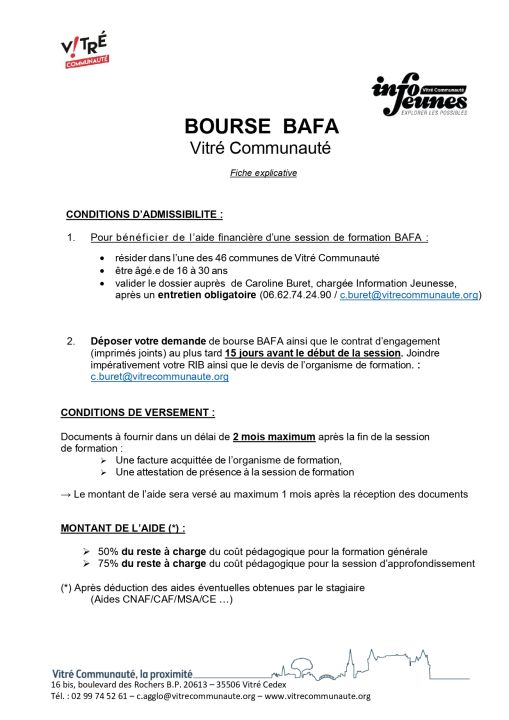 Vitré Communauté met en place une aide financière conséquente sur la formation Bafa.
